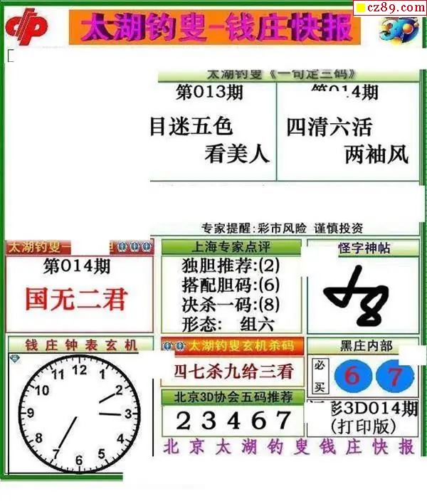 钱庄快报2026014期3d图谜